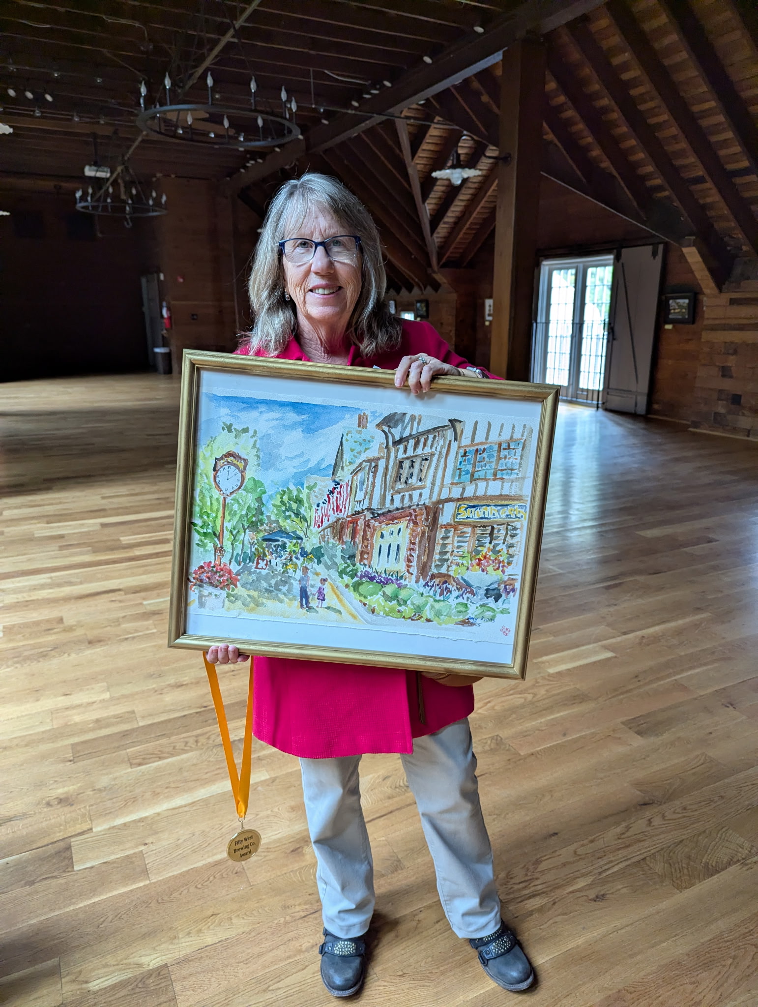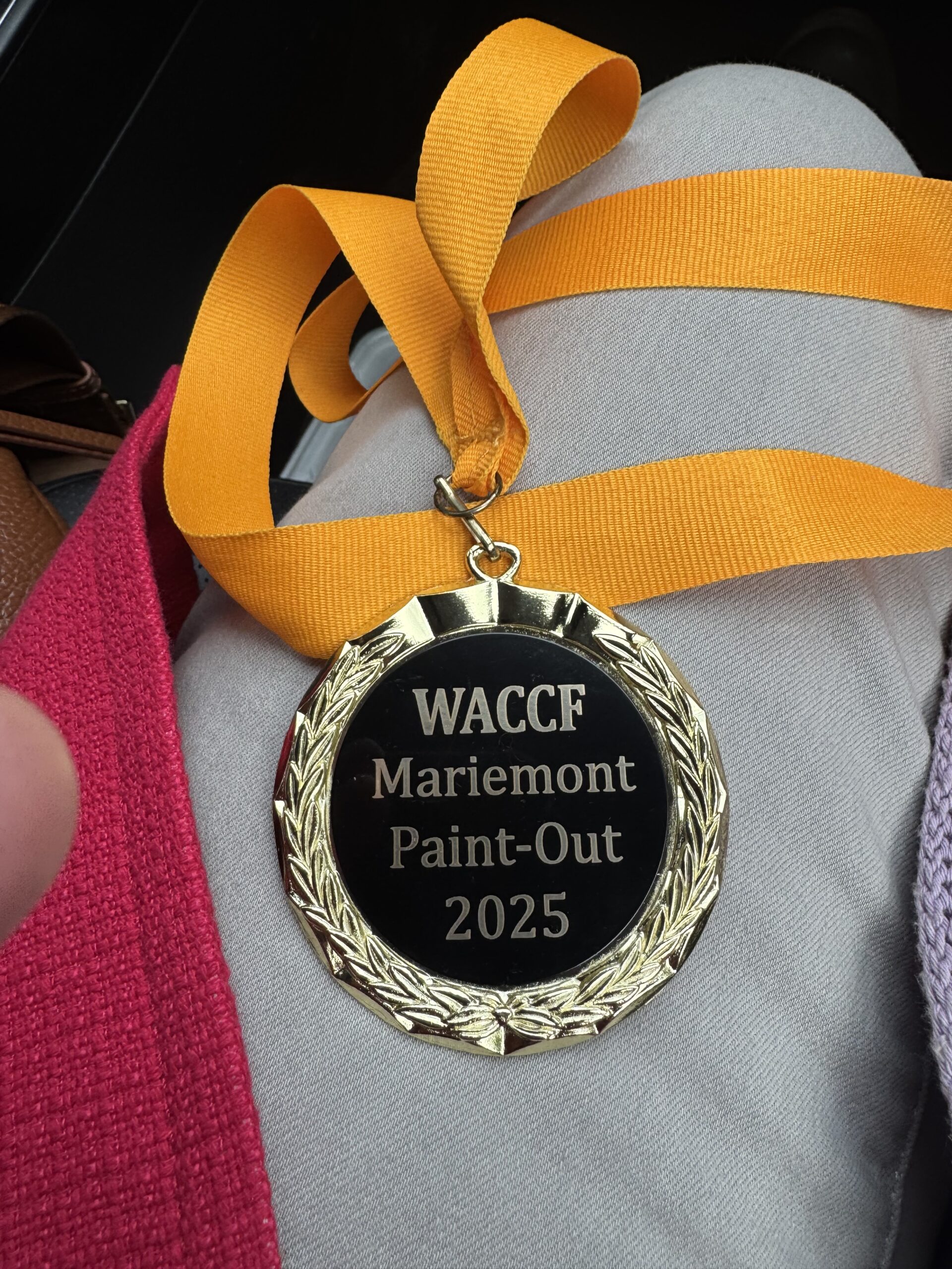 I participated in the Mariemont Paint-Out 2025 on October 17-18. I received the Fifty West Brewing award for my 7″x11″ study of the larger version I am holding above. The study sold and so far I have no photo of it.